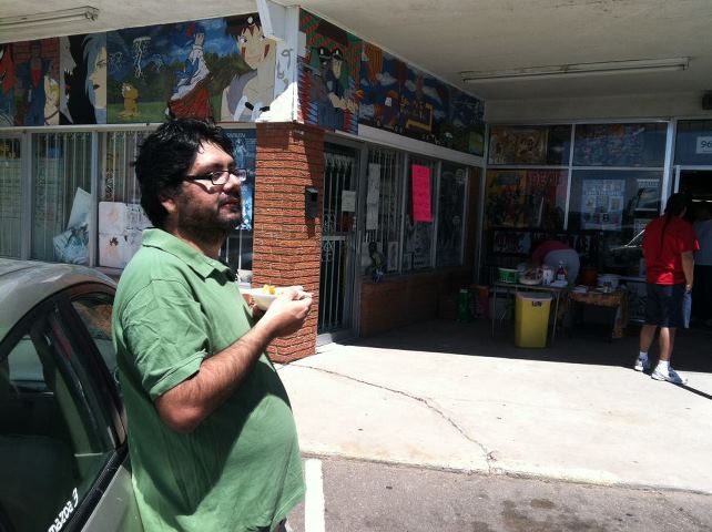 Our next and final stop was Lobo Anime and Comics. There was a sidewalk sale when we arrived and a huge crowd. They also has a large selection of Free Comics, but had this number system which seemed to work. I said hello to Henry and saw Andy Kuhn. I commissioned a Wonder Woman sketch from him and met two local artists, one of which I commissioned another sketch. His name was Paul Z.
